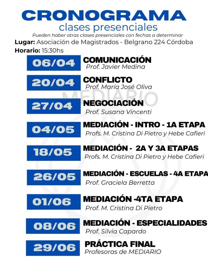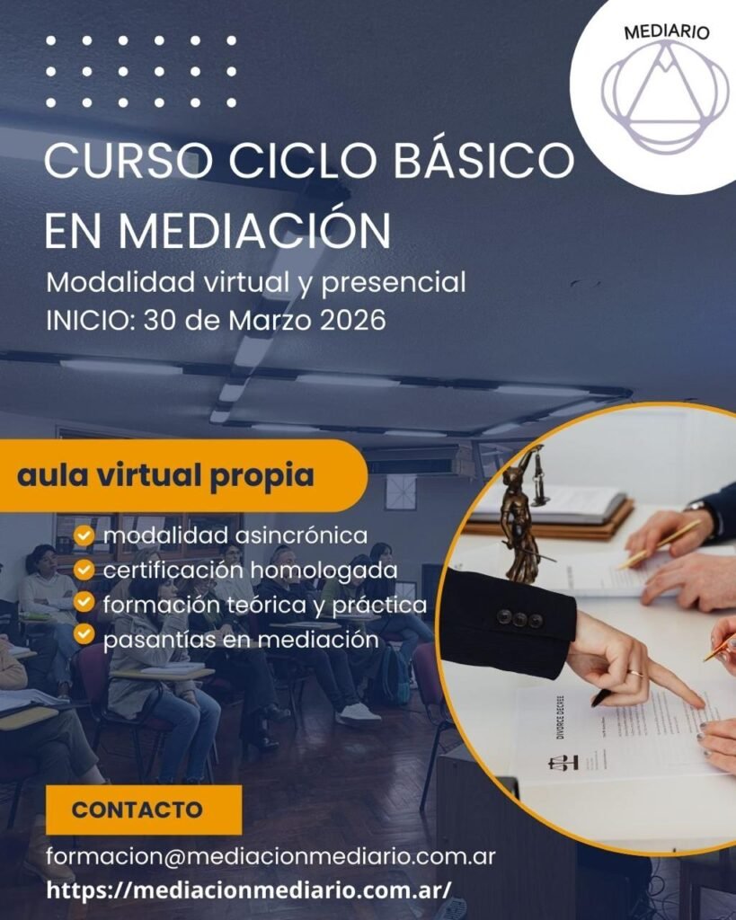 El curso de Ciclo Básico en Mediación, estará disponible en nuestra aula virtual a partir del 30 de Marzo de 2026. Modalidad Mixta (virtual y presencial)